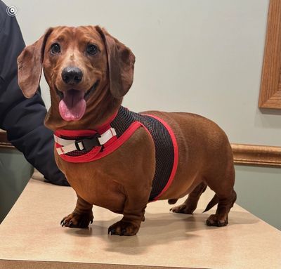 She is a dachshund/Beagle mix. She is a smart, friendly, playful, petite girl weighing 12 pounds. She is very lively and playful and is looking for a home with another playful dog companion. Her DOB 02/28/24. You can check out videos of her and other dachshunds on our FB page.